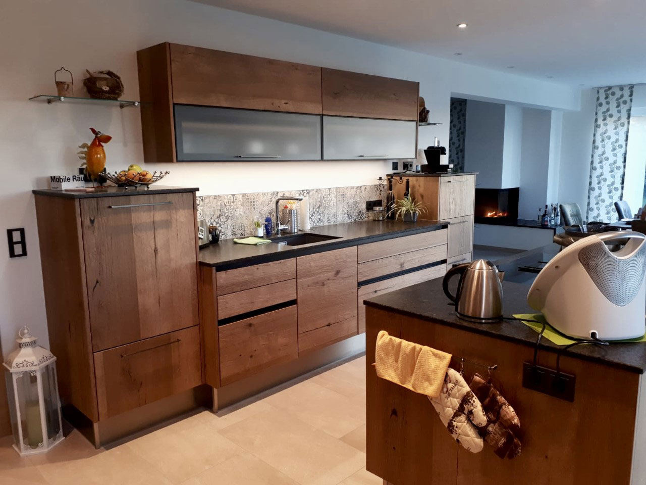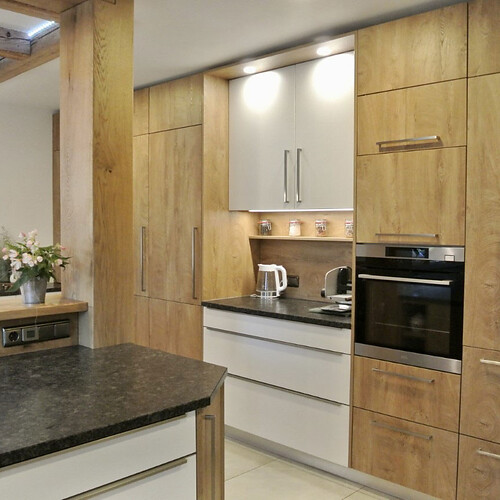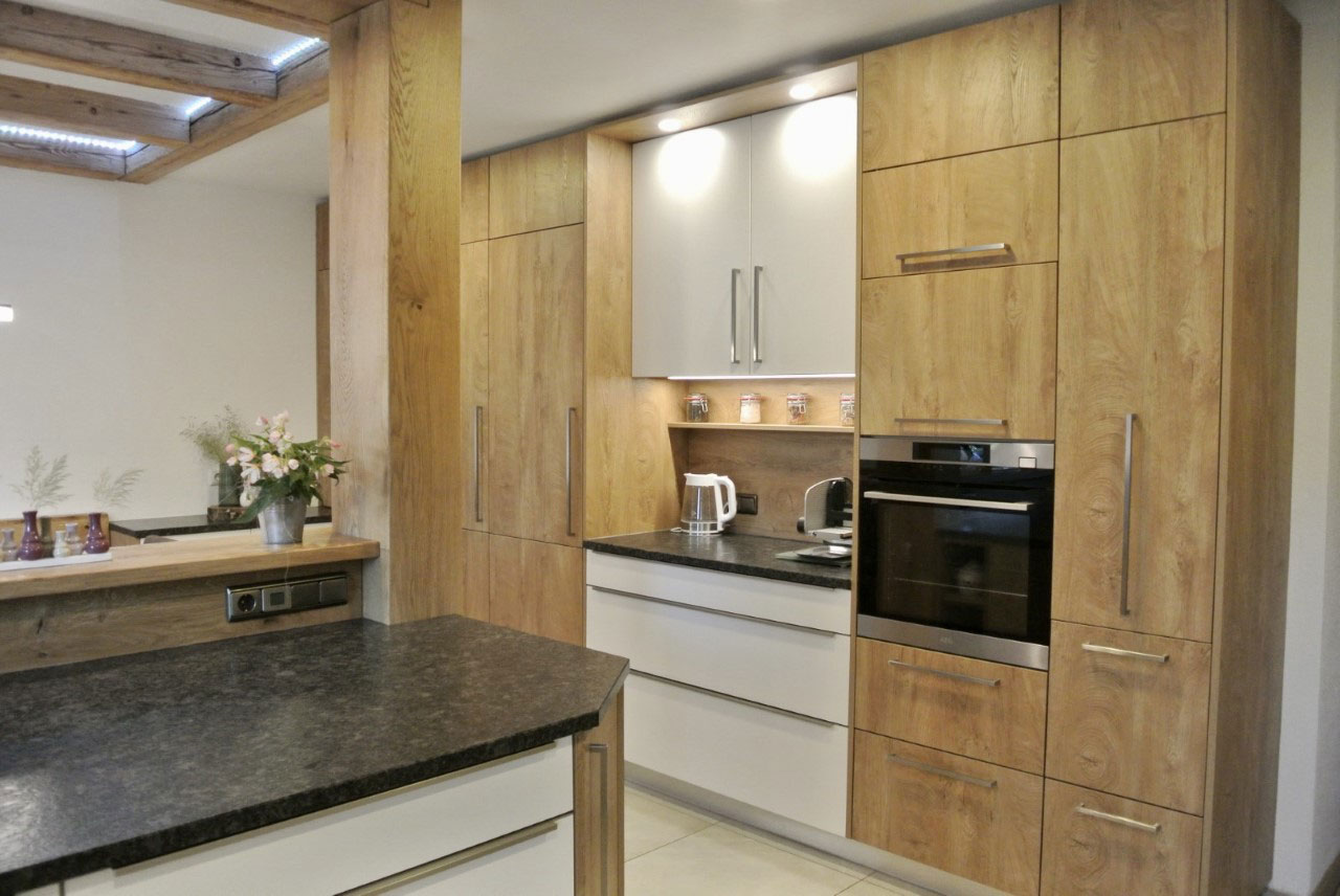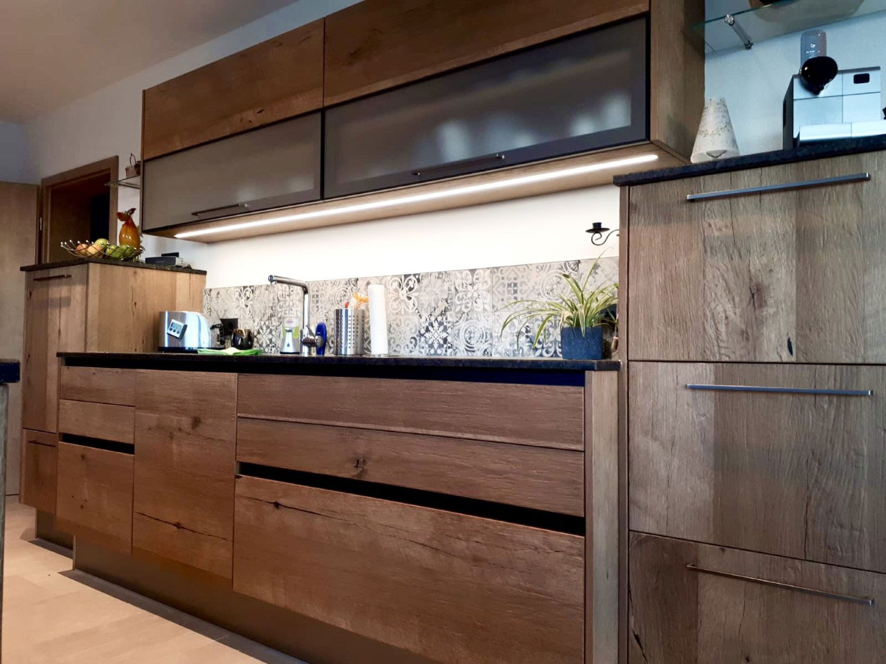 Hängeschränke in Holzoptik Kerneiche als Eyecatcher