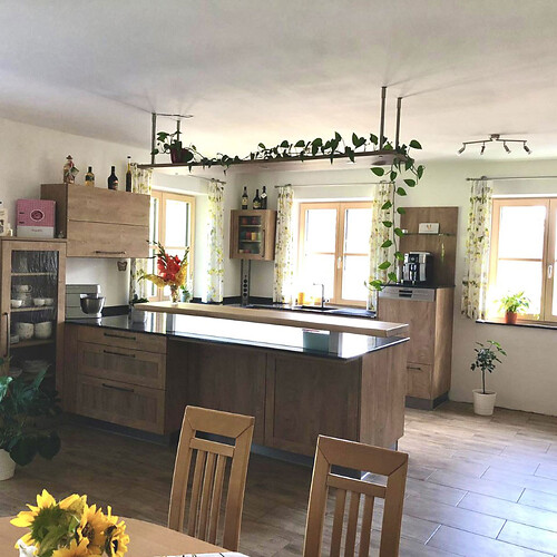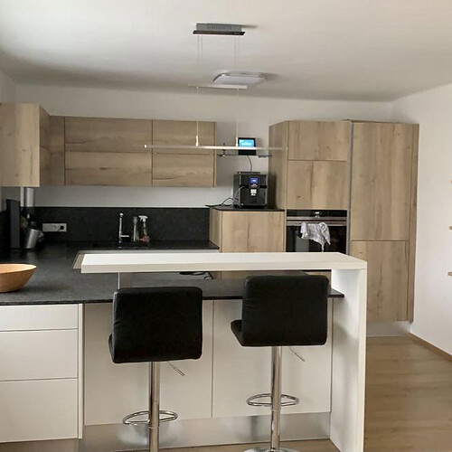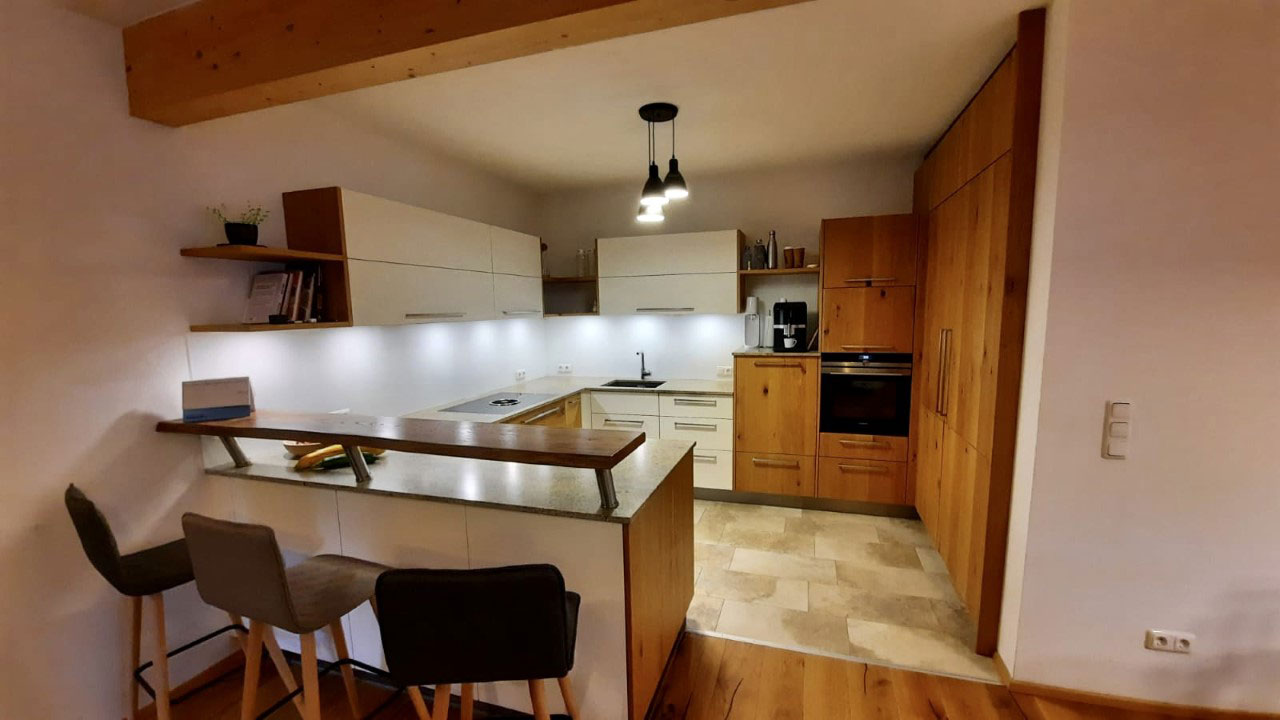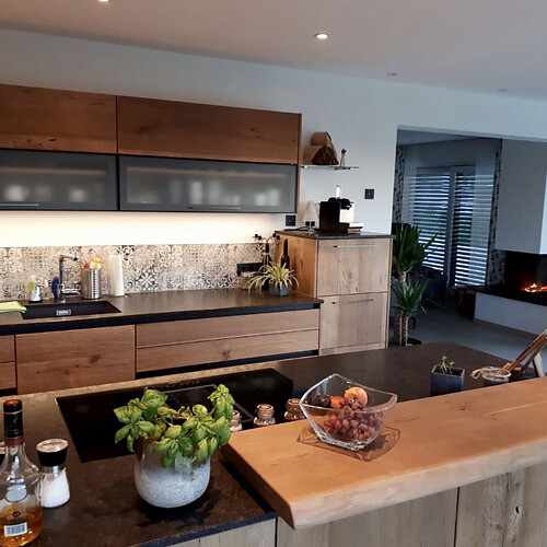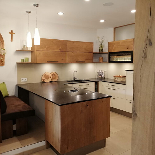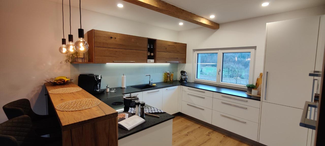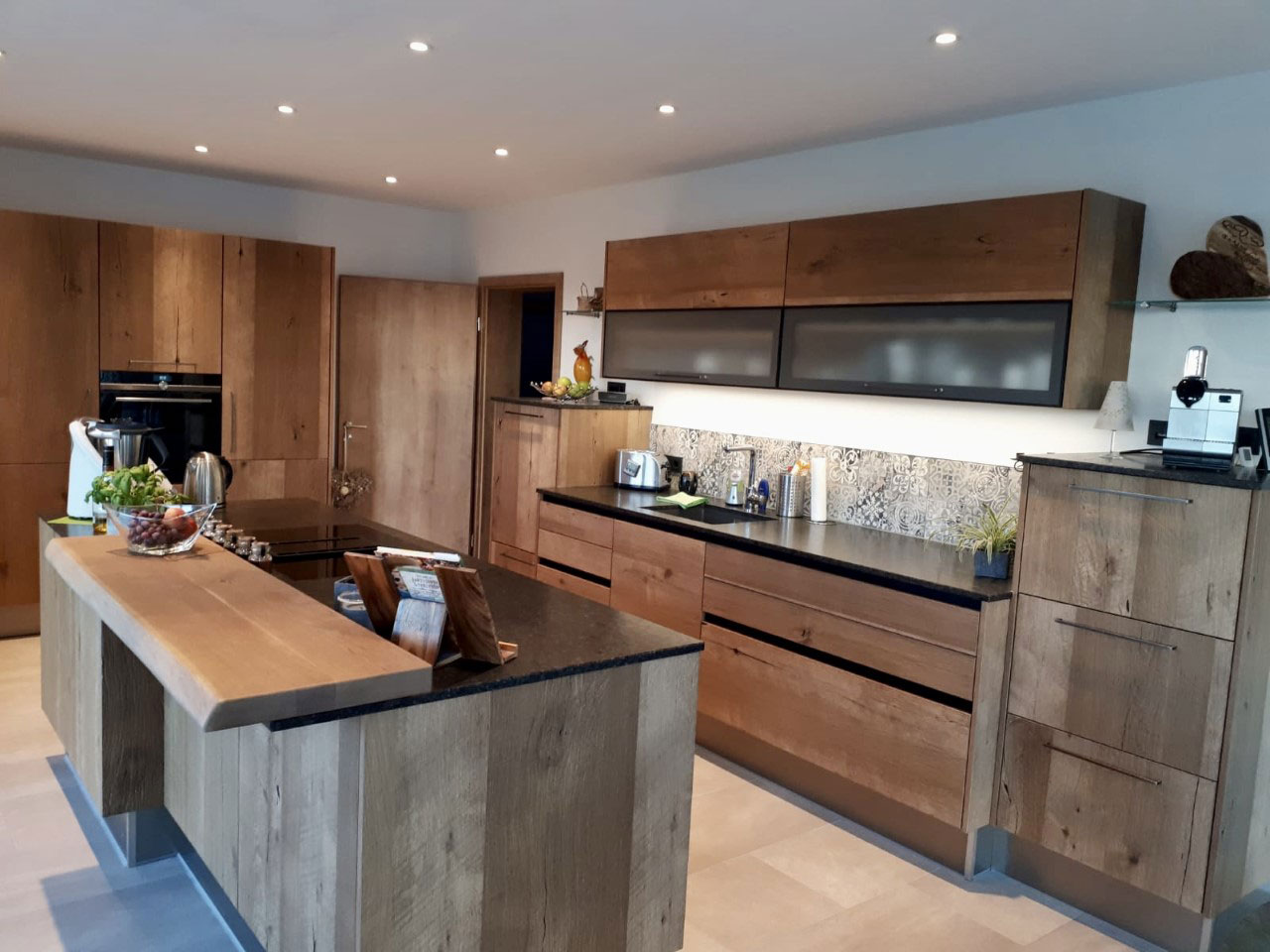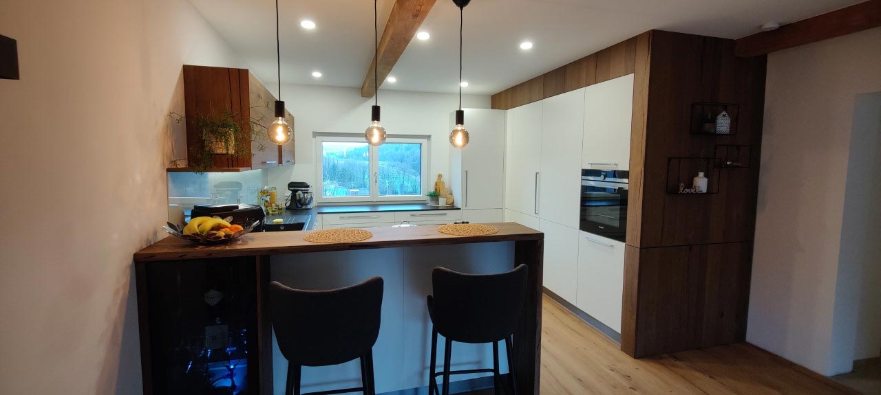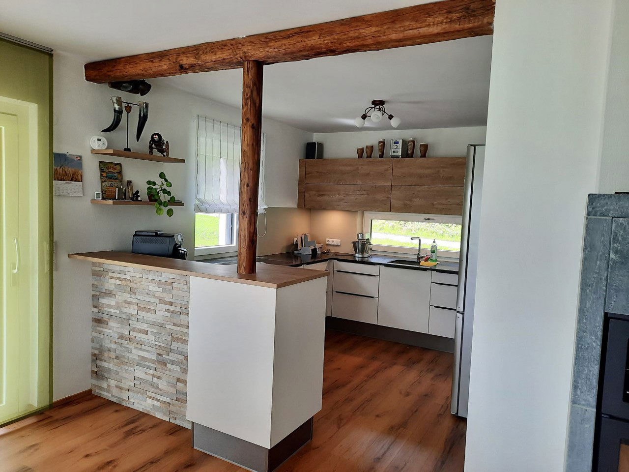 Altholzbalken bauseits durch die Kundschaft eingefügt, da der Hausherr ein Zimmermann ist.