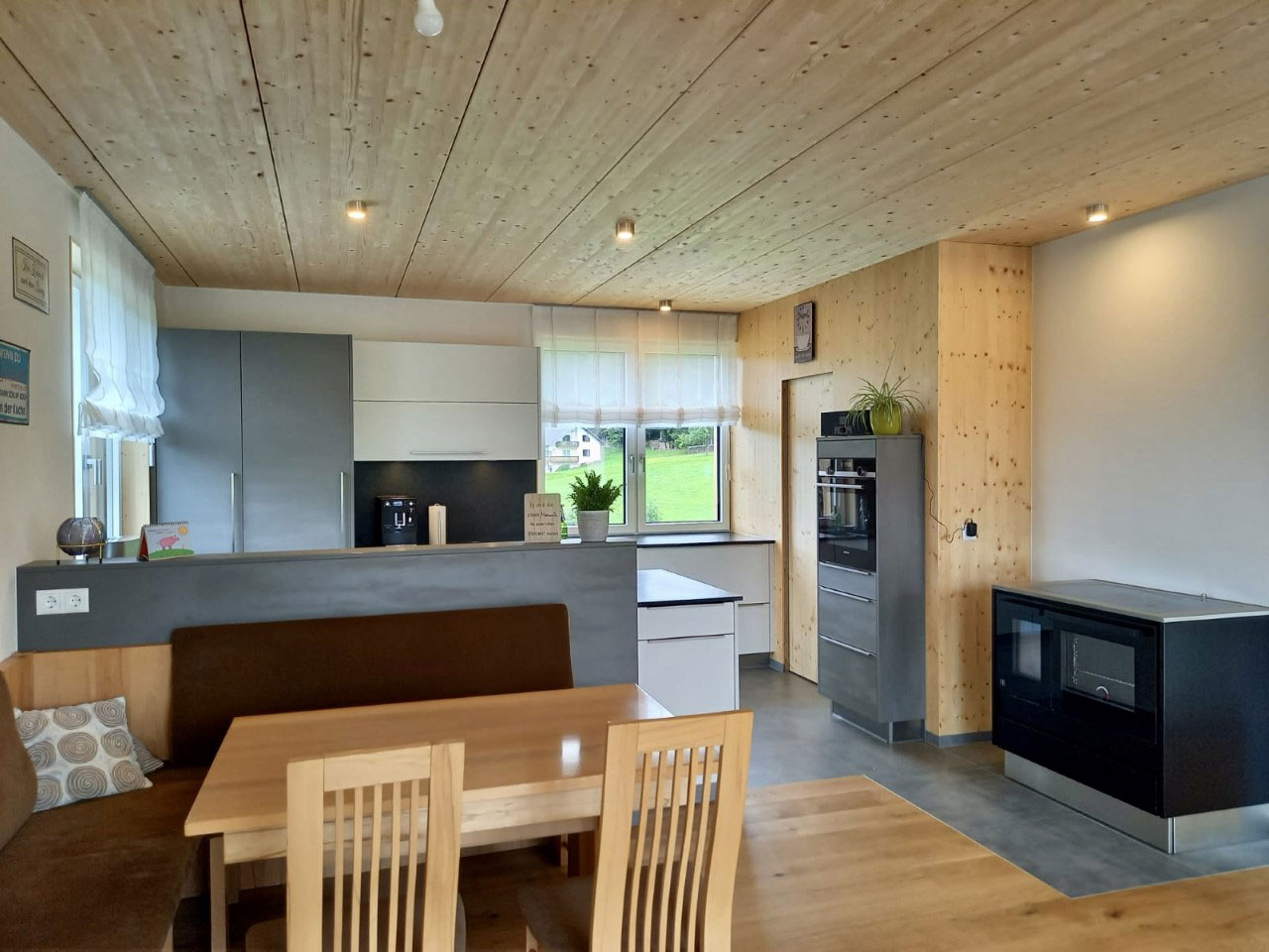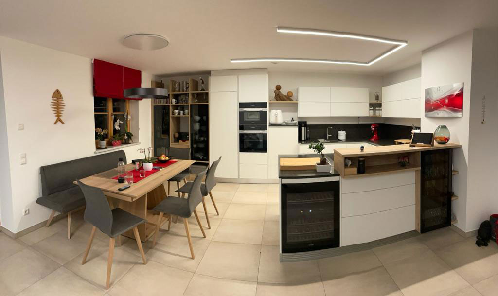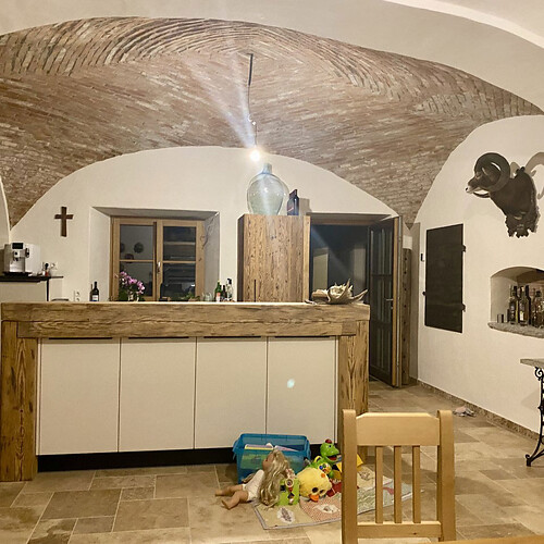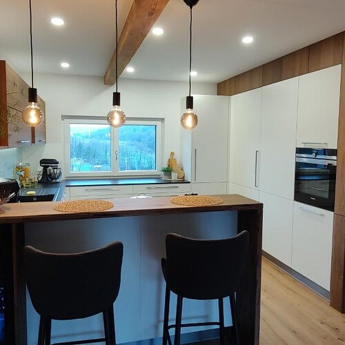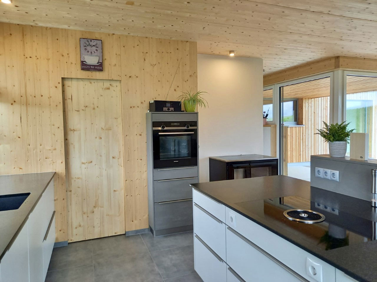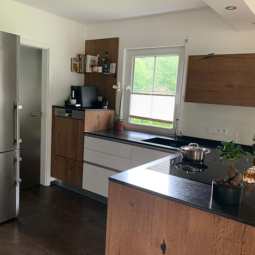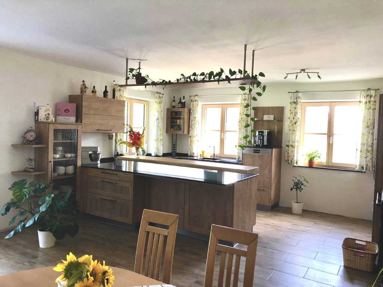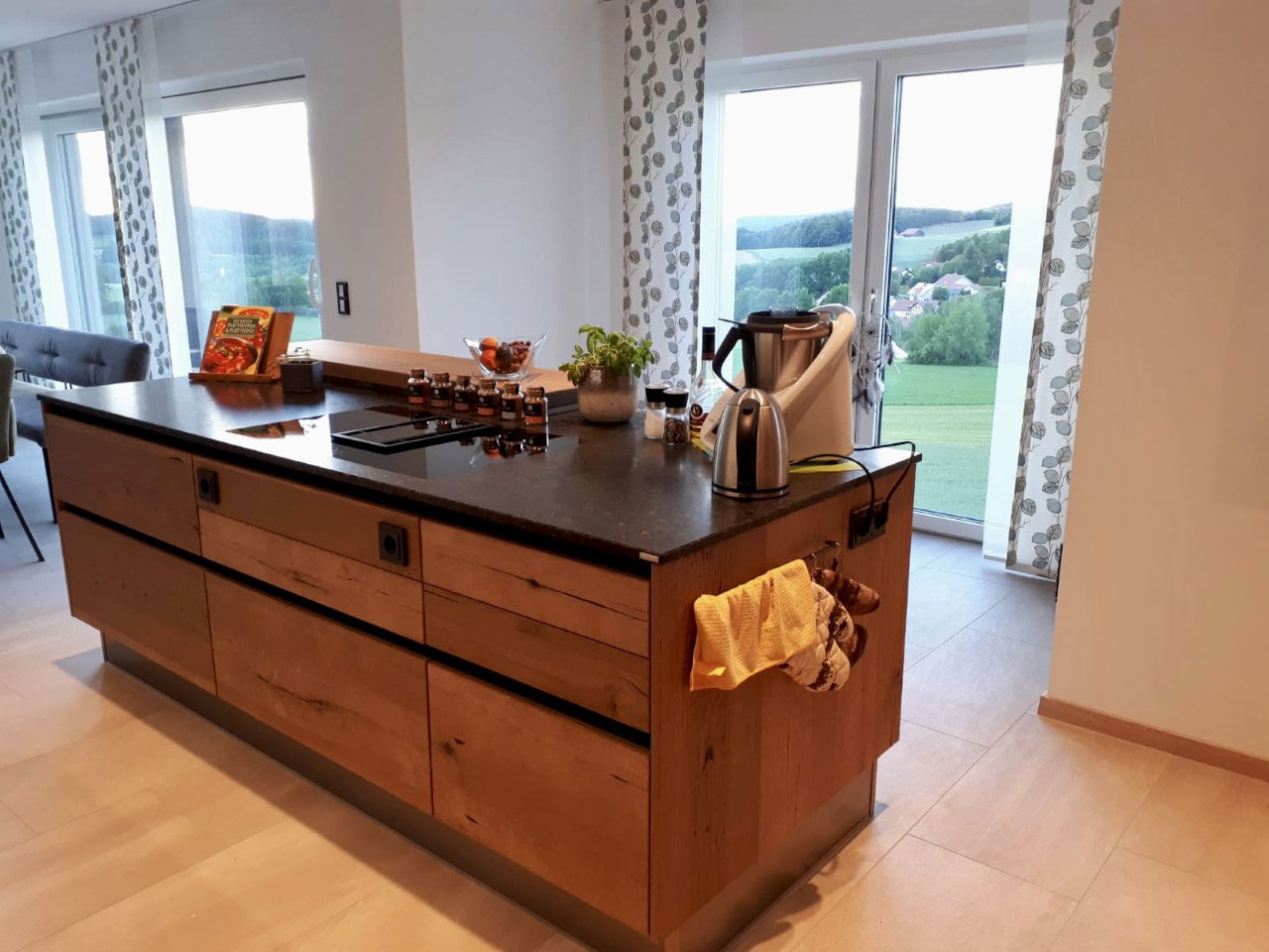 Altholzbalken bauseits durch die Kundschaft eingefügt, da der Hausherr ein Zimmermann ist.