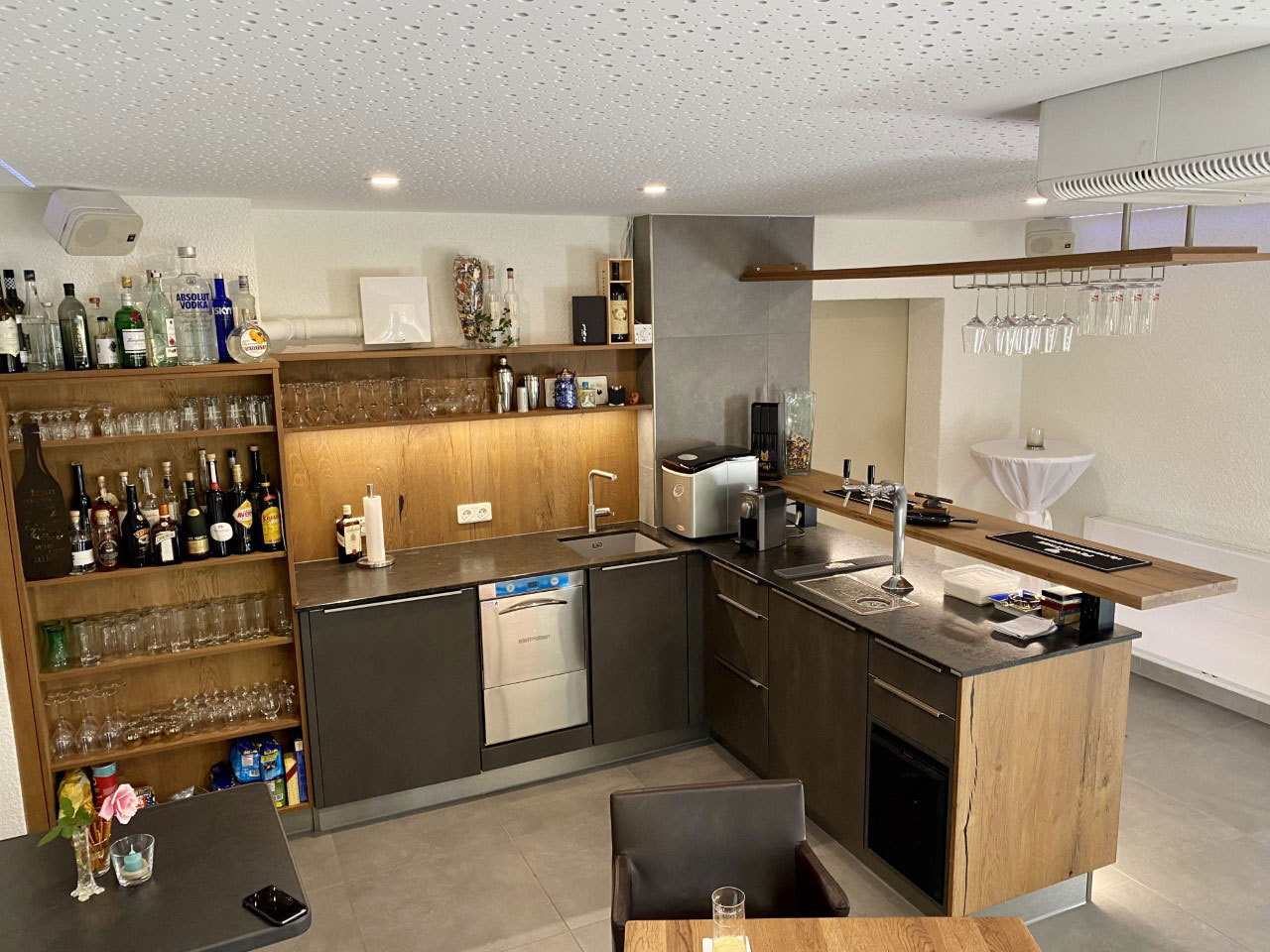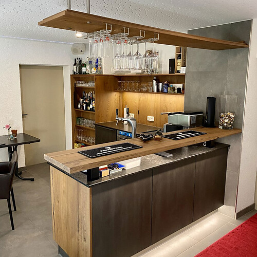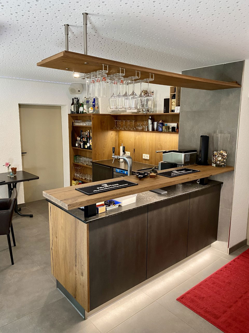 Zapfsäule, Gläserspüler, Kühlschrank – alles integriert.