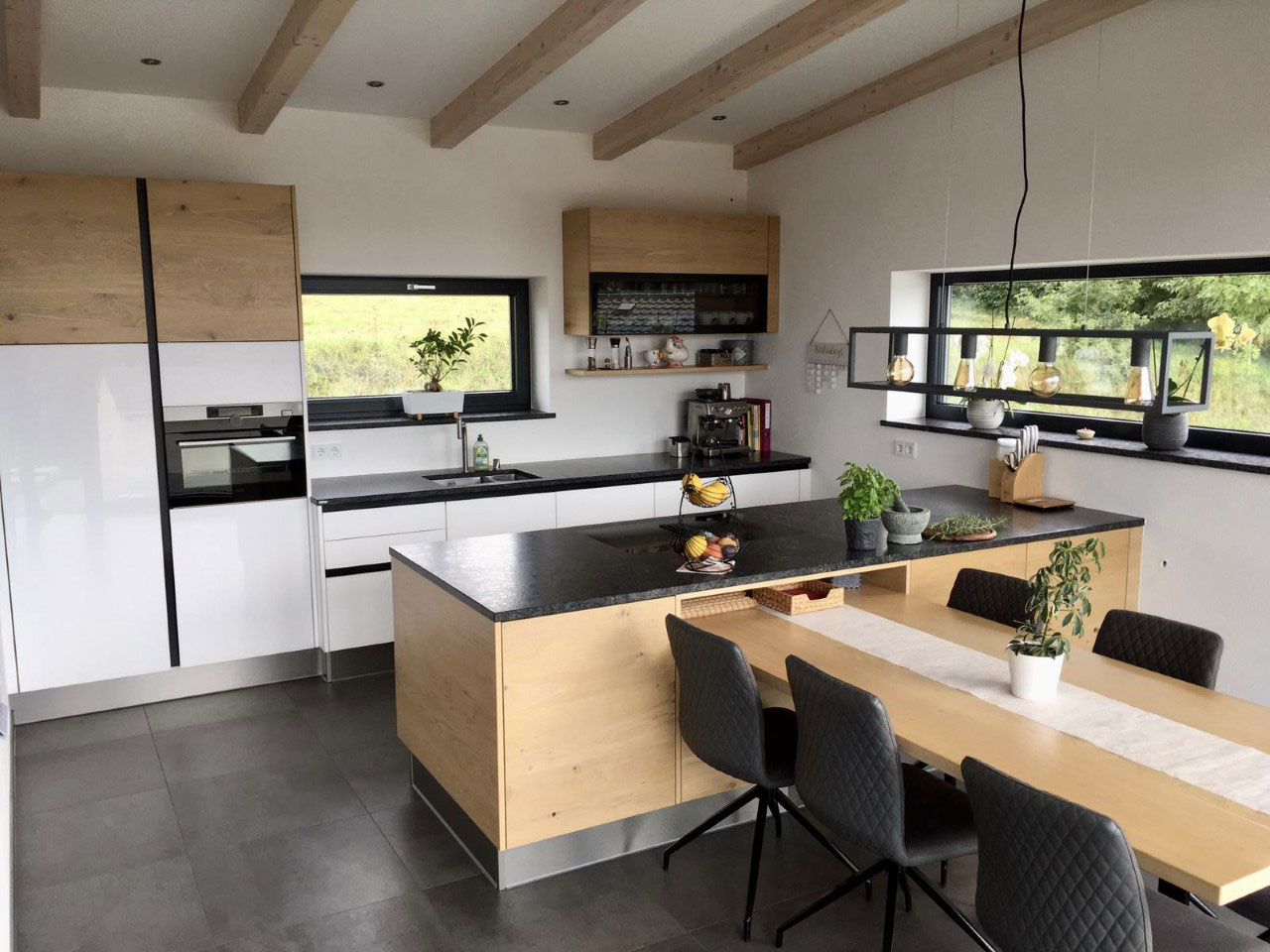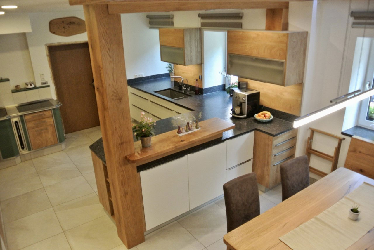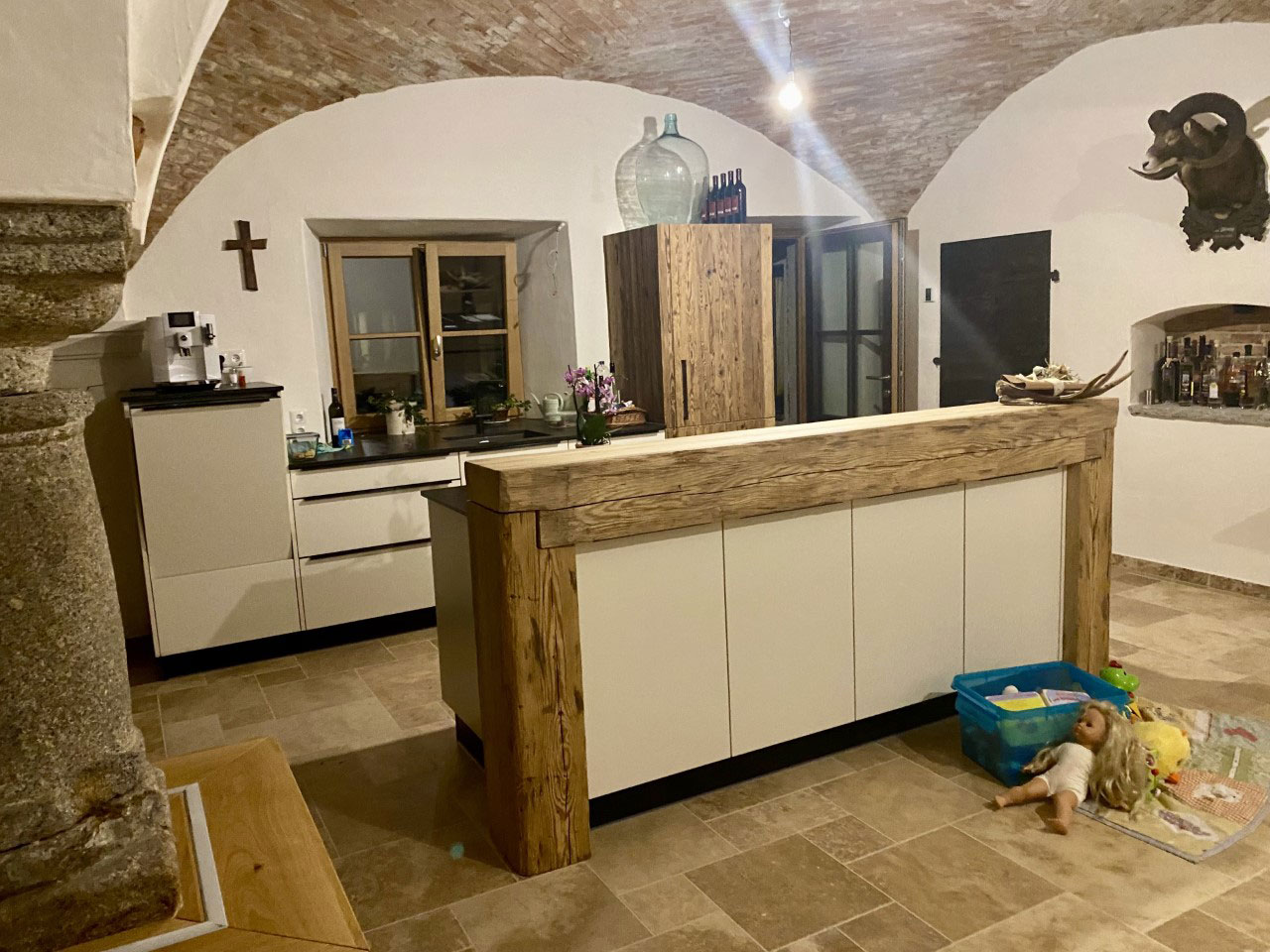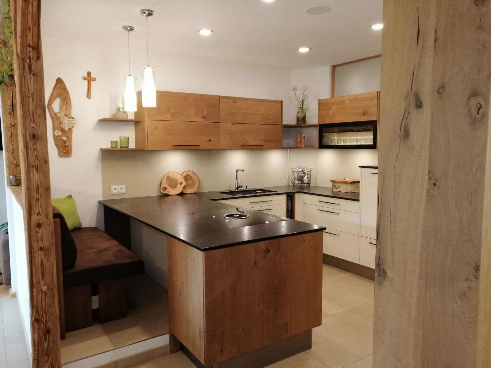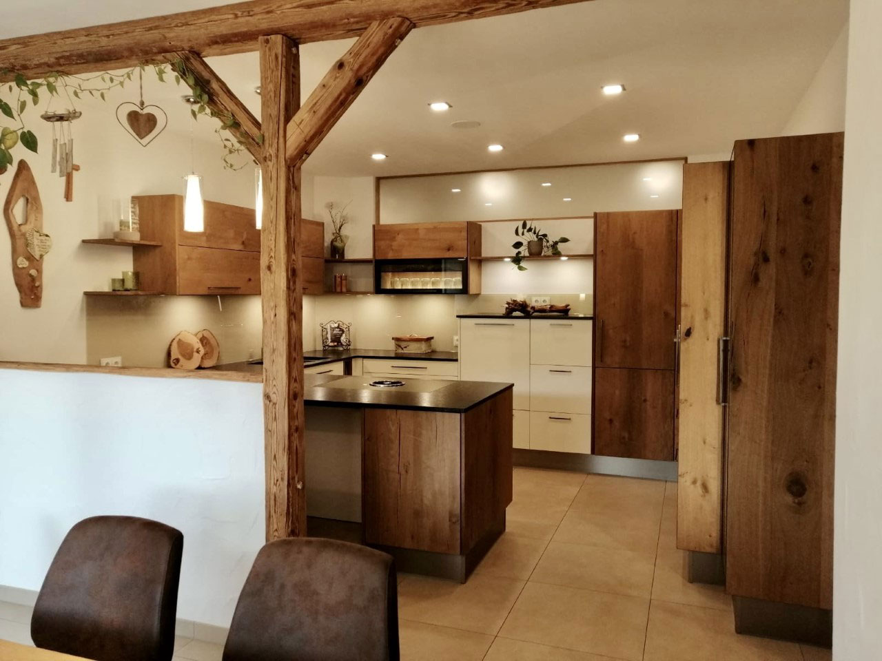 Altholzbalken bauseits durch die Kundschaft eingefügt, da der Hausherr ein Zimmermann ist.