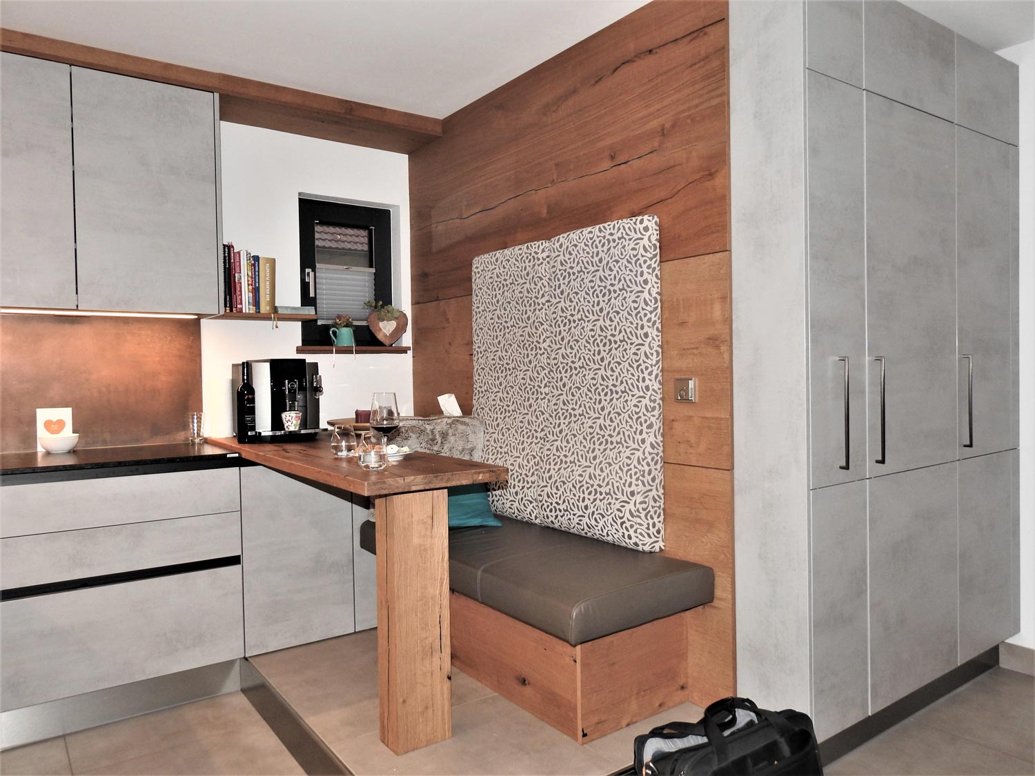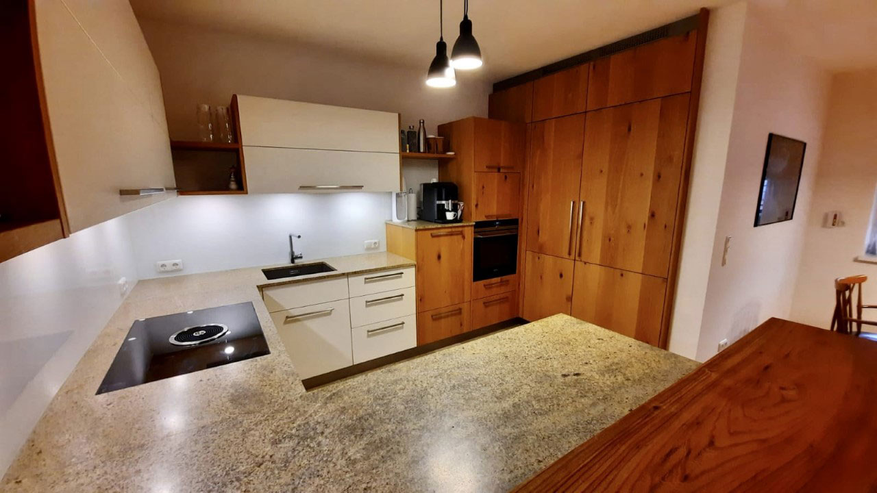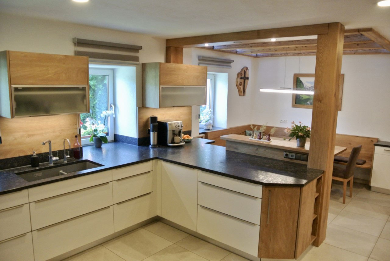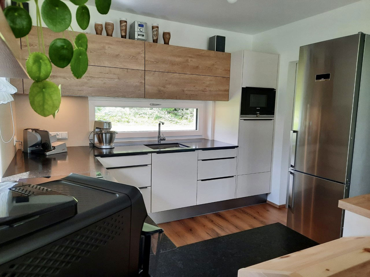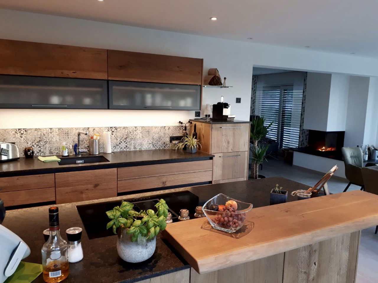Altholzbalken bauseits durch die Kundschaft eingefügt, da der Hausherr ein Zimmermann ist.