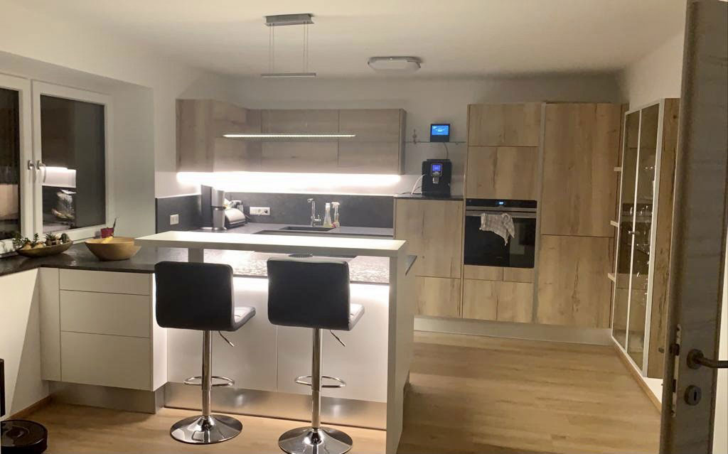 Hängeschränke in Holzoptik Kerneiche als Eyecatcher