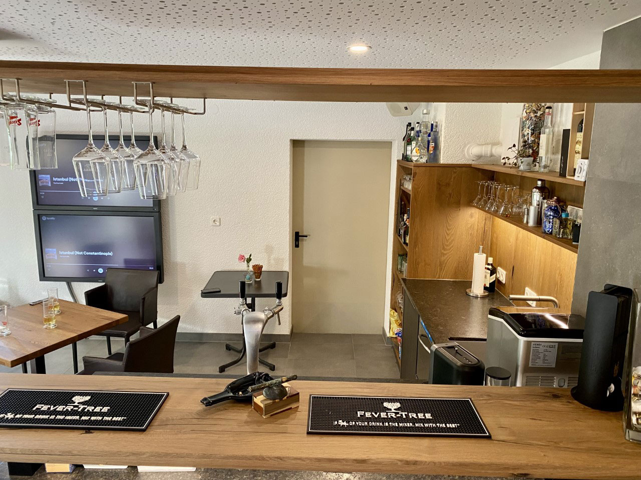 Zapfsäule, Gläserspüler, Kühlschrank – alles integriert.